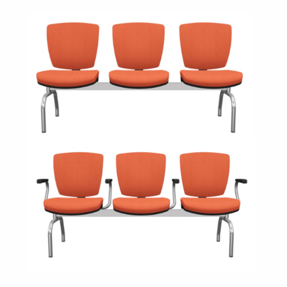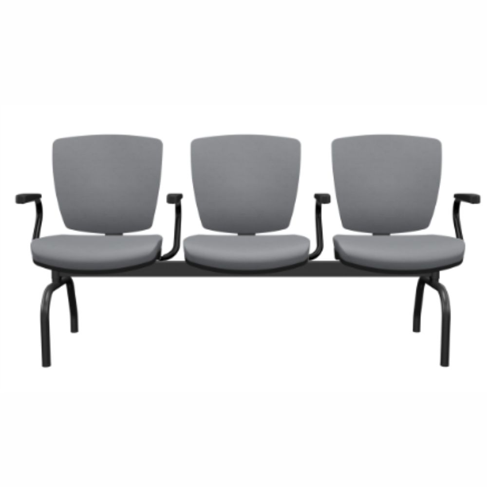 A LONGARINA ALT (PL) – Axcess, estrutura de aço carbono, com pintura preta ou com pintura cromada, assento e encosto estofado e com contra capas de polipropileno injetado, com braços fixos. Ideal para otimizar e organizar espaços coletivos.