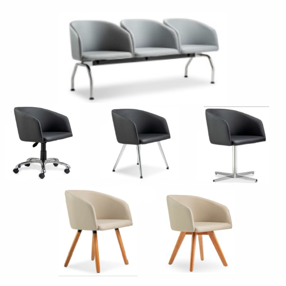 Podemos ajudá-los também com a ambientação das demais áreas com outros produtos desta mesma linha: cadeiras com base fixa e giratória