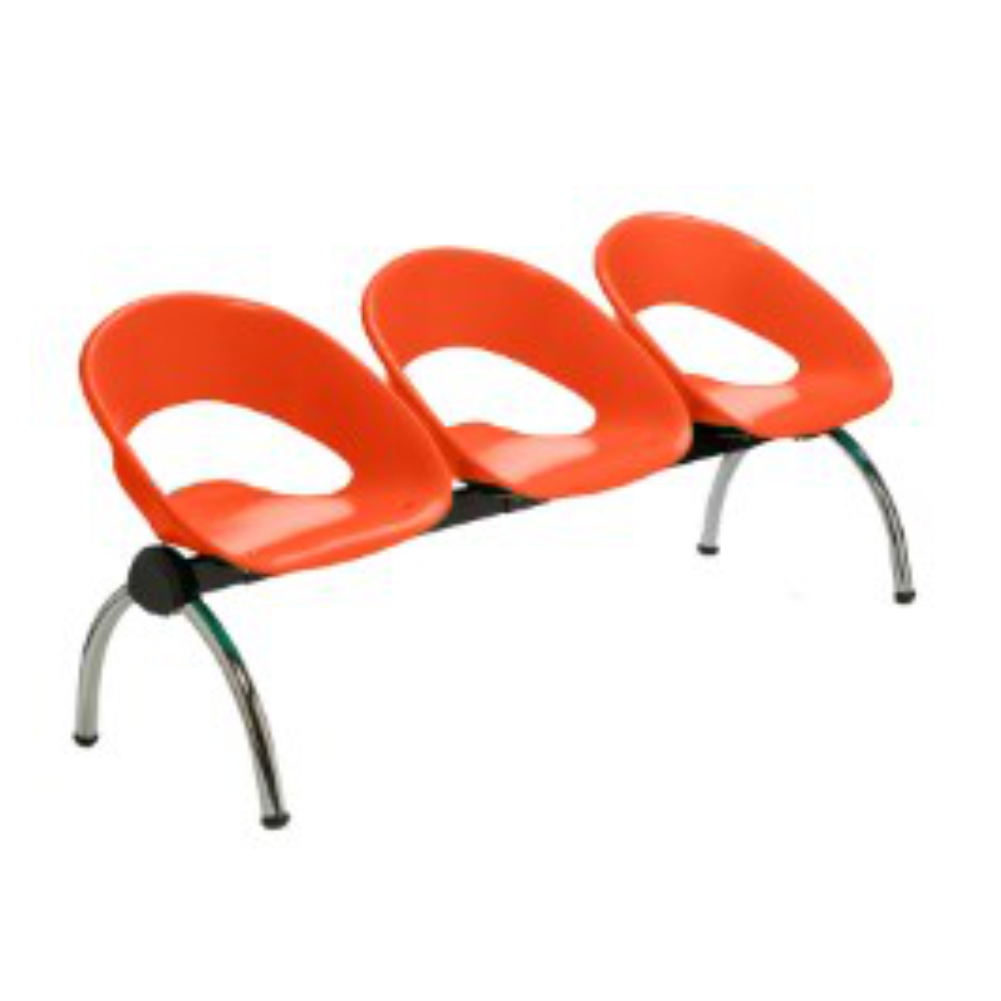 Longarina On (RS) com base de aço carbono cromado ou com pintura; Assento e encosto de polipropileno injetado.