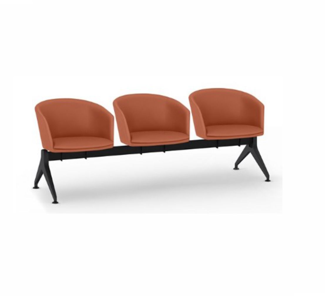 Base e mesinha de apoio de aço carbono com pintura preta ; Concha totalmente estofada em diversos revestimentos.